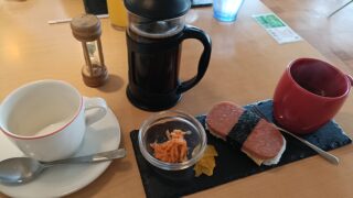 てんどん天舞さんに伺ってきました。名古屋駅コンコースに新しく出店した朝から天ぷらが楽しめるお店です。メニューです。グランドメニューが楽しめるかと思っていたら、朝餉メニューだけでした。味変アイテムはそろっていました。ミニ天丼を頂きました。うん...