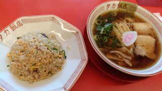 タカ飯店さんに伺ってきました。麺屋はなびの新山さんのプロデュースする町中華のお店です。オープン当初は夜間営業しかしていなかったのですが、最近になってランチ営業を始めたようです。メニューです。半チャーハン+中華そばを頂きました。まぁ普通~。