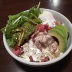 口八町@なんば店に伺ってきました。 ローストビーフとアボガド丼です。 ¥1,000だったかな…。汁物もなく、ローストビーフ丼がでてくるのです。ないわな・・・。 https://tabelog.com/ ...